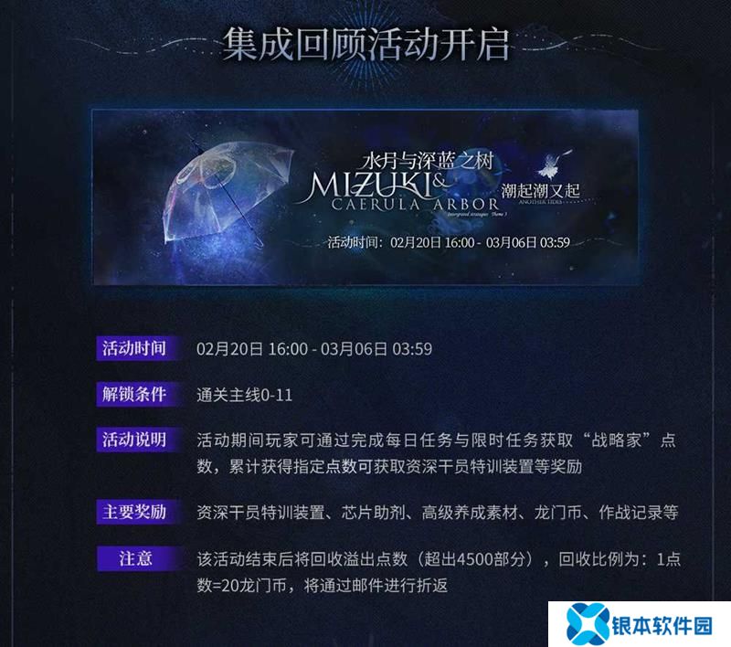 注意:该活动结束后将回收溢出点数(超出4500部分),回收比例为:1点数=20龙门币,将通过邮件进行折返。