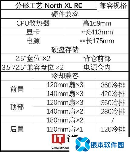 为了更全面地了解North XL RC机箱的规格参数,以下为其详细配置概览:机箱设计充分考虑了散热与扩展性,尽管在部分尺寸上有所限制,但仍提供了灵活的风扇与冷排安装选项。特别指出,当在电源仓内安装双硬盘时,显卡最大长度会略有缩减,但依旧能满足大多数高端显卡的安装需求。