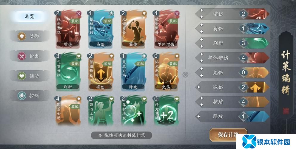 计策卡分为输出、防御、辅助、控制四种,根据关卡需求灵活搭配。