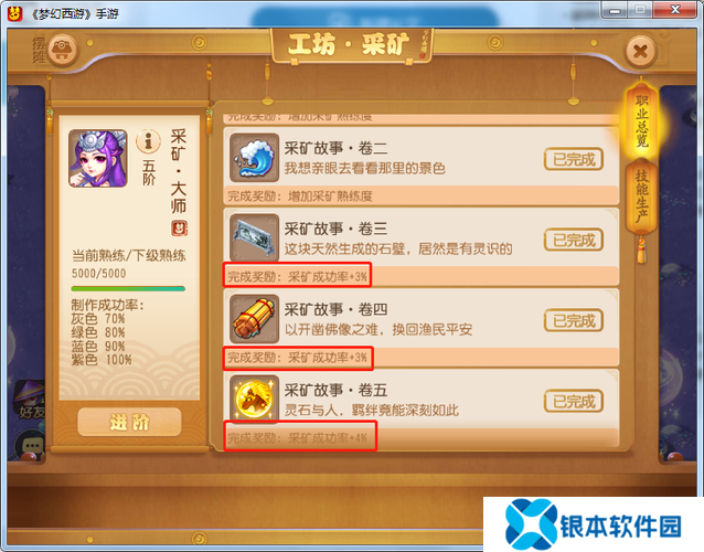 完成采矿故事卷(三/四/五卷)也可提升采矿成功率。
