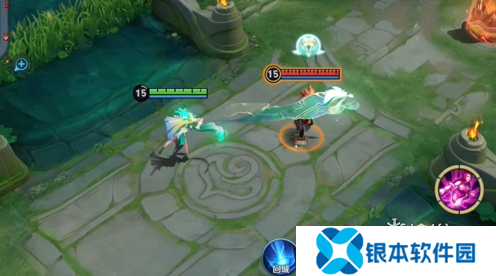 3、二技能:向前移动一段距离,对敌人抛出三道翠色的叶子。
