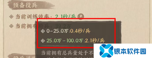 4、当兵营总兵力超过25万时,训练效率为2.1秒/兵。