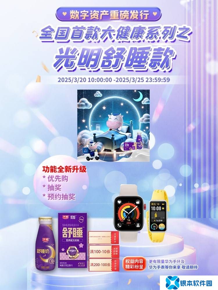 除此之外,在数字化浪潮汹涌澎湃的当下,光明乳业以行业先锋之姿,重磅推出全国首款大健康系列之光明舒睡款数字资产。光明随心订APP作为此次数字资产发行平台,全面焕新升级数字资产板块功能,为用户带来前所未有的沉浸式体验。本次数字资产权益非常丰富,包括了1元支付体验14天舒睡奶、每个季度末发放给持有用户光明舒睡奶满减券、限量华为手环以及华为手表等等,并且本次光明随心订APP数字资产板块功能全新升级,包括了发行历史项目部分用户空投、标杆项目优先购、光明随心订APP数字资产板块和官方社群抽奖优先购、预约抽签购买以及候补公售等等,各种与用户互动玩法精彩纷呈,诚意满满。这不仅是数字资产发行模式的突破,更是光明乳业引领行业创新发展的有力证明。