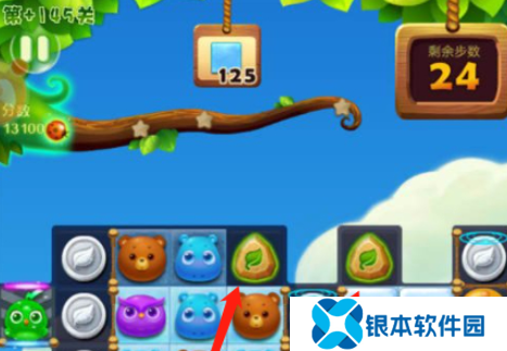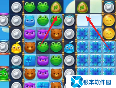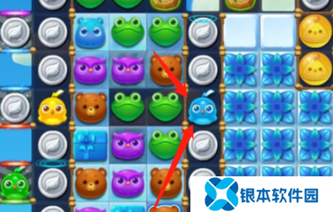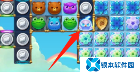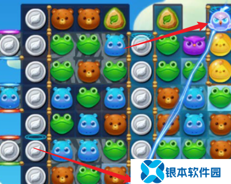 5、消除青蛙获得强制礼包后将左下方的闪电鸟和银币进行交换。