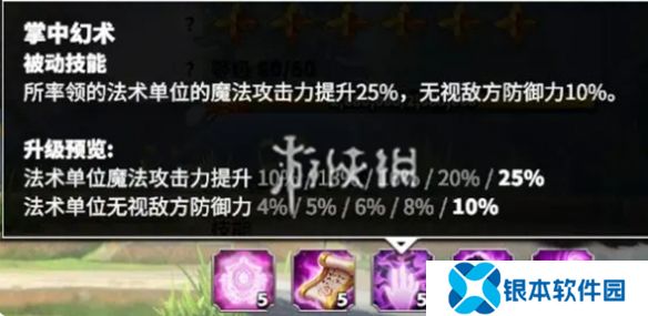 所率领的法术单位的魔法攻击力提升25%,无视敌方防御力10%。