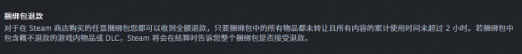 3、若捆绑包中包含概不退款的游戏内物品或DLC,那么Steam将会在结算时告诉您整个捆绑包是否接受退款。