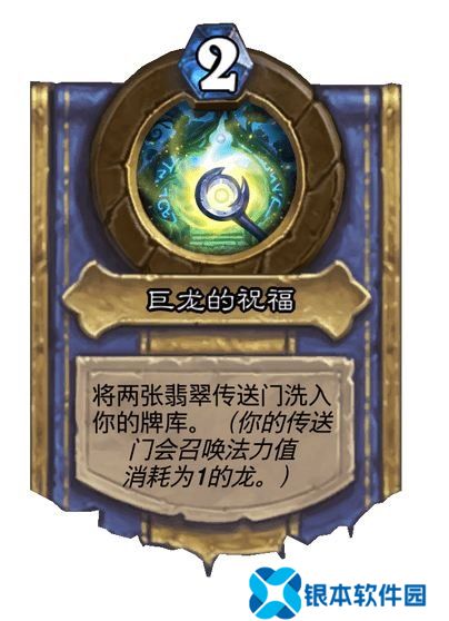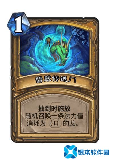 2费,将两张翡翠传送门洗入你的牌库。(你的传送门会召唤法力值消耗为1的龙。)