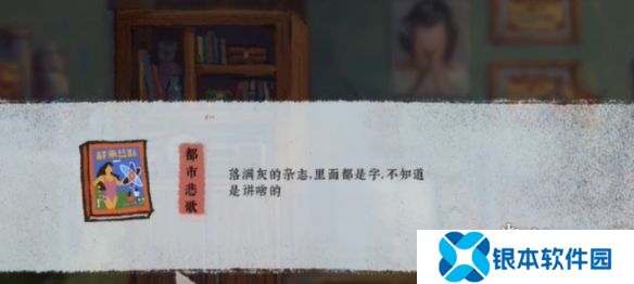 4、点击桌上的钥匙,打开柜子,得到道具,点击左侧书柜得到都市悲歌。