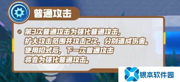 第3次普通攻击为强化普通攻击,扩大攻击范围并攻击己次,分别造成伤害。