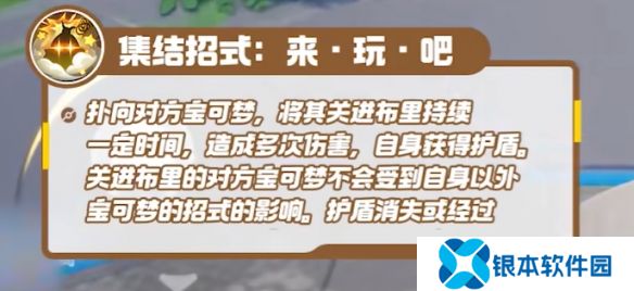 扑向对方宝可梦。将其关进布里持续一定时间,造成多次伤害,自身获得护盾。