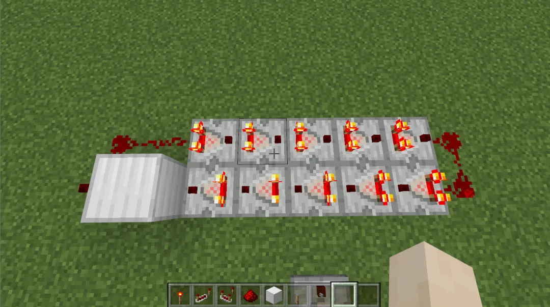 想要延长激活持续时间还是可以利用用样的方法,增加红石比较器数量,用红石连接,在铁块侧边新增加1个红石火把。