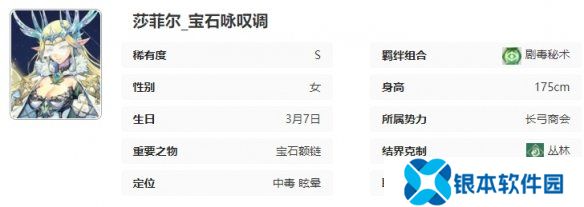 碧玉之玺照映出来犯毒蛊。莎菲尔对中毒目标的伤害提高20%,附加眩晕时触发一次目标身上的中毒伤害。位于前排时莎菲尔免伤提高15%,位于后排时莎菲尔控制和毒伤提高10%