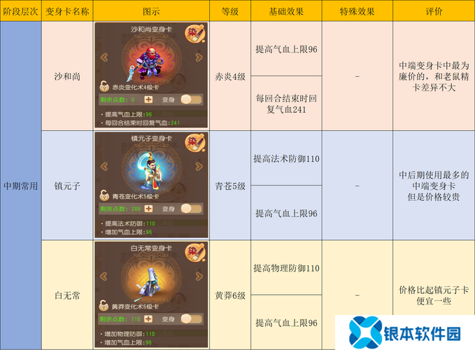 优先选择唐僧、观音菩萨等具有增益效果的变身卡。