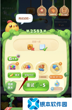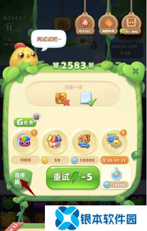 1、遇到难关无法独自通过时,点击屏幕右下角的按钮直接选择跳关。