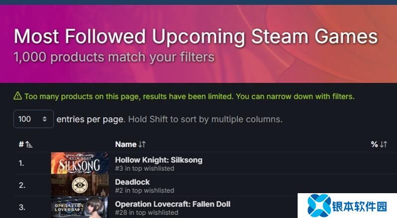 据SteamDB最新数据显示,在今日《怪物猎人:荒野》发售后,《空洞骑士:丝之歌》迅速重回Steam未发售游戏关注榜首位。